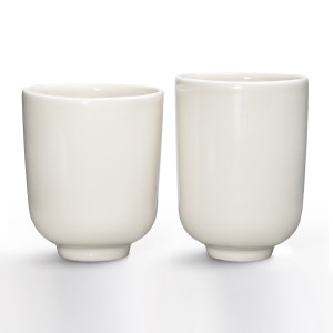 Zestaw dwóch kubków ceramicznych „On i Ona” to dwa naczynia o objętości ok. 240 ml, z których jedno jest wyższe i węższe („On”), a drugie jest niższe i szersze („Ona”).