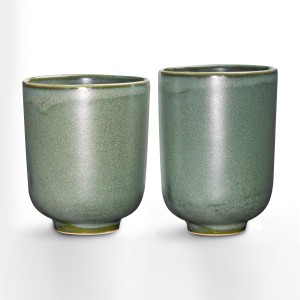 Zestaw dwóch kubków ceramicznych „On i Ona” to dwa naczynia o objętości ok. 240 ml, z których jedno jest wyższe i węższe („On”), a drugie jest niższe i szersze („Ona”).